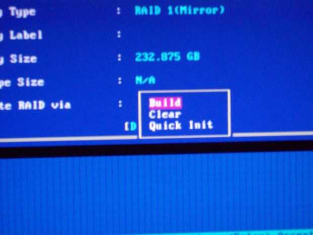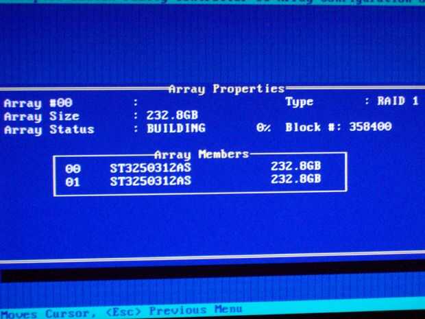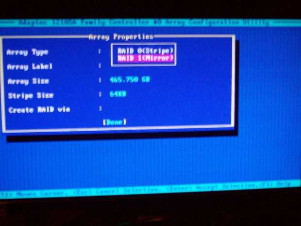 3. matriz propiedades. Matriz tipo tienes muchas opciones de Raid para elegir. En esta guía vamos a utilizar Raid 1 espejo.