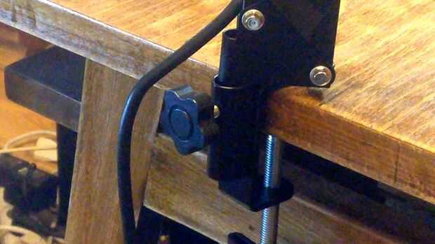 quería un soporte de micro para usar al grabar sonido a la computadora, pero siendo el cordero de bajo presupuesto que soy, decidí hacer uno.En lugar de hacer un stand completo personalizado, construí un soporte que se conecta a un trípode de cámara.