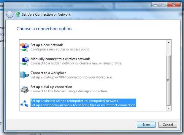 Desplácese hasta la parte inferior de la ventana que aparece arriba y seleccionar configura una red ad hoc inalámbrica.