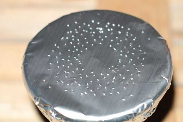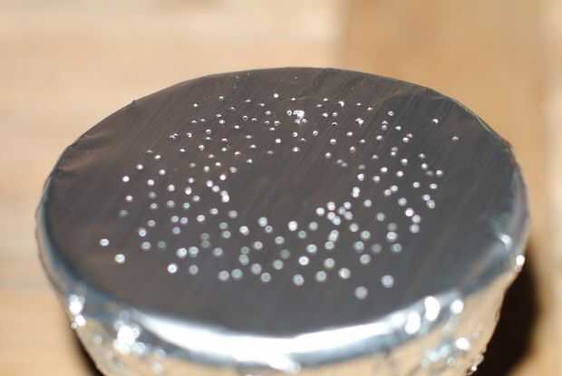 Ahora tienes que poner papel aluminio en le cabeza de cachimba. Utilizar al menos 2 capas para evitar que se queme el tabaco. Asegúrese de que se sienta apretado antes de su comienzo hacer agujeros. Hacer pequeños agujeros donde se encuentran el carbón y algunos "para respirar". Usar una aguja para hacer el agujero, pero también se puede hacer menos, pero los agujeros más grandes.