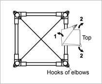 3. a continuación, desplegar completamente la parte superior del recuadro . Difundir hacia fuera, colocar sobre la parte superior del marco del braguero cuadrado.