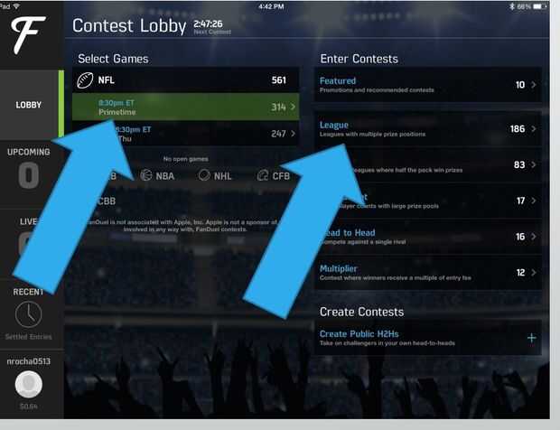 -Mirar la imagen y el concurso de elección es bajo el título "NFL". Es importante seleccionar un concurso bajo esta liga para estas instrucciones para ser exactos.