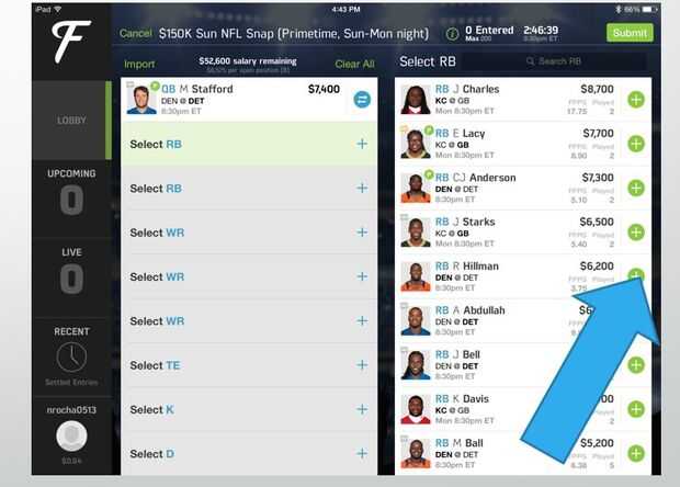 -Utilizar su conocimiento de fantasía para seleccionar dos corredores de la lista de jugadores para cumplir con sus dos puestos vacantes.