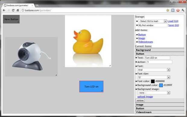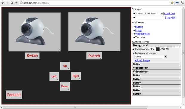 3. puede agregar botones, imágenes y webcams con los enlaces debajo de "Agregar elementos"