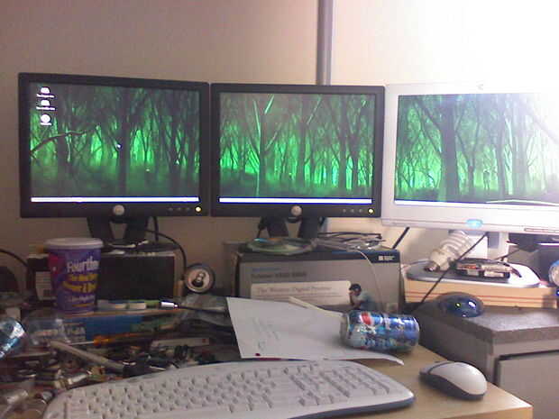 Saludos creadores!Siempre soñé con tener una configuración de varios monitores. No pude permitirse uno. Después de unos ahorros compré a dos monitores. Lo de tipode desordenado cuando usted los pone sobre la mesa. No quiero ser también montado en la