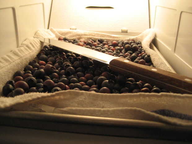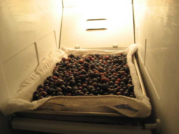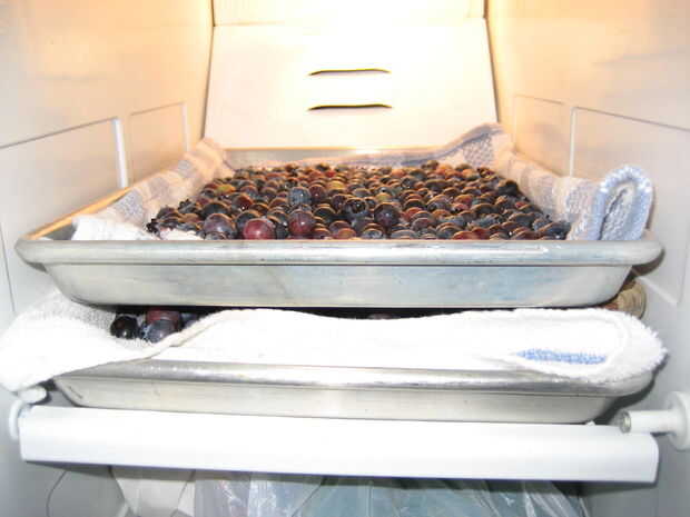 Si tienes muchas bayas, dude de apilar dos o más bandejas, siempre y cuando no hay espacio para moverse a través de aire frío. Usé un cuchillo grande para crear un vacío.