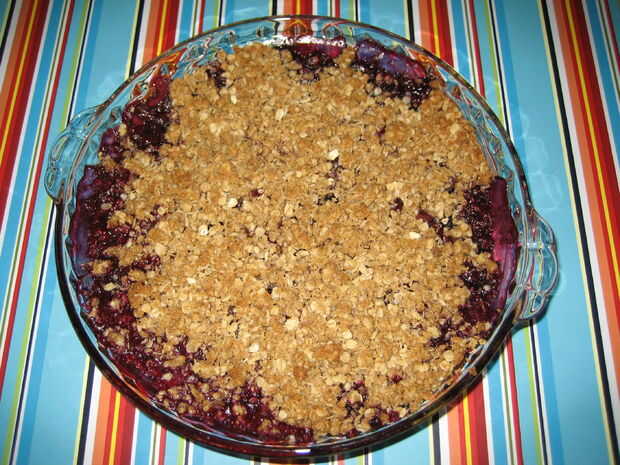 Esta receta es ridículamente fácil. Poner los arándanos en el plato. Mezclar los ingredientes restantes en un tazón con un tenedor. Desmenuce la mezcla sobre las bayas. Hornear durante 30 minutos a 375 grados.