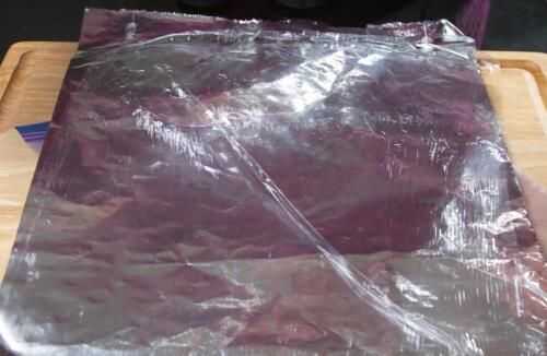 Recoger una bolsa de plástico resellable, además de un pedazo de papel aluminio y envoltorio plástico. Coloque la bolsa sobre el mostrador en el contador, luego el papel aluminio y por último la envoltura plástica.