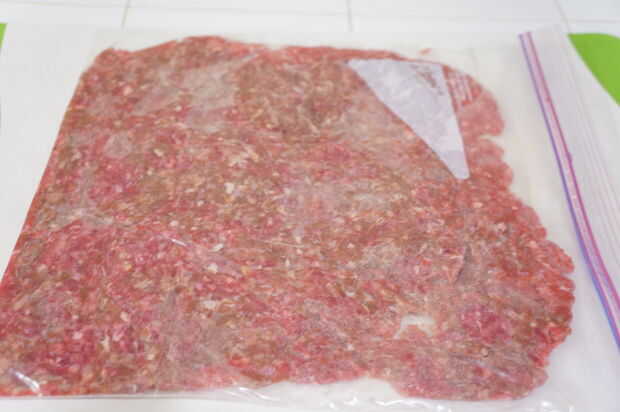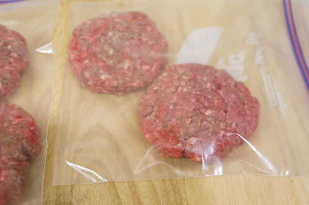 Si no es bolsa de congelación las hamburguesas medirá lo que necesita para las recetas utilizadas y colóquelo en el congelador y aplanan. Quite el aire y selle el bolso; Marca el peso de la bolsa y en posición plana y congelar.