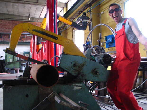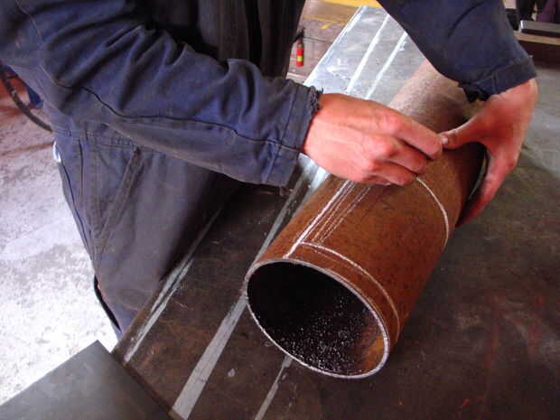 Corte el tubo en un ángulo de 45 grados y soldar los dos tubos para formar una curva L.