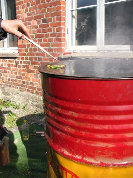 Cortar algunas piezas de tamaño de astillas de madera y encender un fuego debajo de ellos con papel hasta que permanecen iluminadas por cuenta propia. la estufa puede producir algo de humo al principio pero una vez trabajando correctamente no mucho se que fluye fuera de los extremos. la madera debe ir en el estante superior de la sonda de alimentación permitiendo que el aire fluya por debajo de encender las puntas. después de unos minutos la cocina superficie se calentará y puede empezar a cocinar: stir-fry, hash browns o cottage frito patatas curry, barbacoa, pescado, origen, pasta...