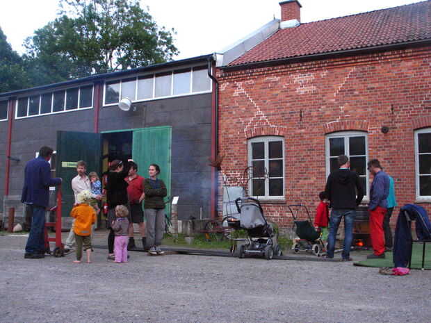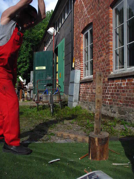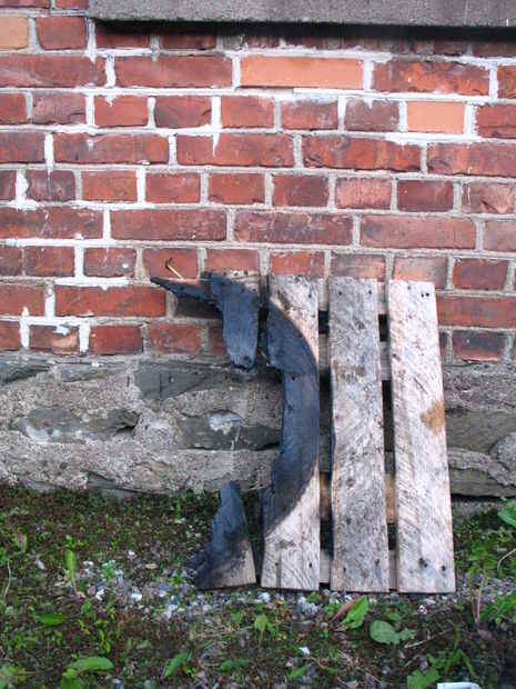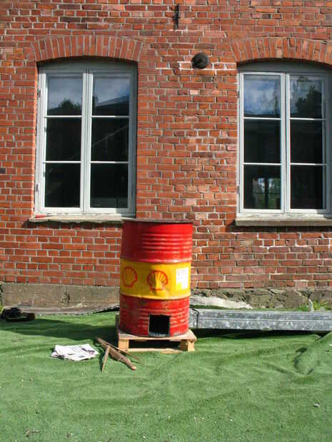ponemos este cohete en una plataforma para facilitar el transporte de la estufa y el flujo de aire mayor que era una mala idea porque nuestro cohete estufa consiguió demasiado caliente incluso en la parte inferior de modo que carbonizado y ahumado la palled sino también porque los pedacitos de carbón cayendo a través de la cámara de combustión (dejamos un agujero en la parte inferior para el flujo de aire añadido como un experimento) incendiaron la plataforma.