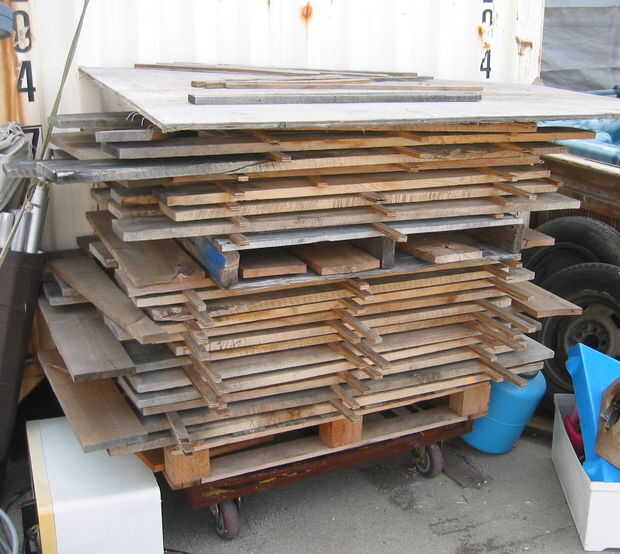 Esta pila tiene un tablero de contrachapado en la parte superior para arrojar lluvia. Es un carro con ruedas que era práctico para moverlo hasta que me dieron en el lugar perfecto.