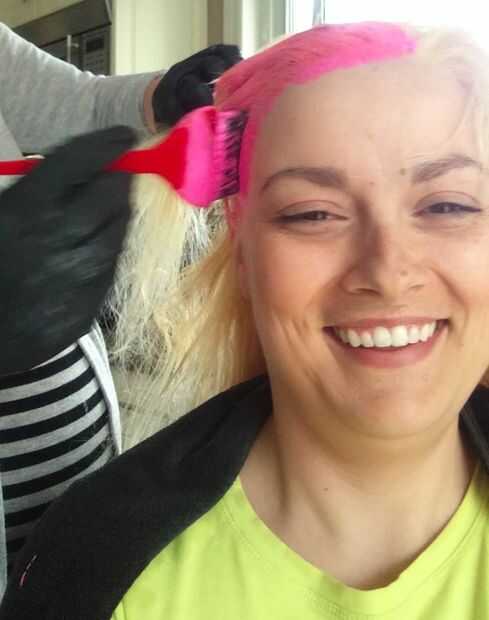 o dividiendo el cabello en secciones y a partir de la parte inferior, aplica color / acondicionador de la mezcla a tu cabello con el cepillo de aplicación