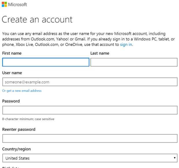 Si no tienes una cuenta de Microsoft, haga clic en el botón Sign Up Now en la parte inferior de la página, llenar la información necesitada. Asegúrese de desmarcar la opción de enviarle correos electrónicos promocionales, si no desea que cualquiera.