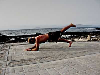 (iniciar con 30 años, luego construir hasta 1 minuto) – desde la posición de la tabla, levantar una pierna recta detrás de ti.