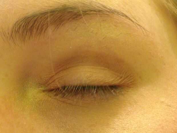 Con un cepillo de suave, mezcla un color más intenso en el pliegue. Si no debe ser demasiado oscuro; sólo unos pocos tonos más oscuros que tu tono de piel.