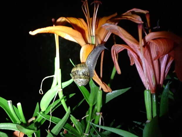 La razón de los caracoles y babosas como salir por la noche es porque es fresco, menos depredadores y menos posibilidades de secar, si los caracoles y babosas están en un día soleado, consigue demasiado caliente y seco hacia fuera y morir.