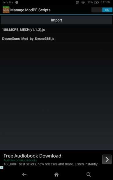 Nota: el mod debe aparecer en la carpeta de secuencias de comandos mod administrar mcpe; Asegúrese de que el mod texto es en negrita. Esto significa que está habilitado, pulsación larga en él y toque activar para activar