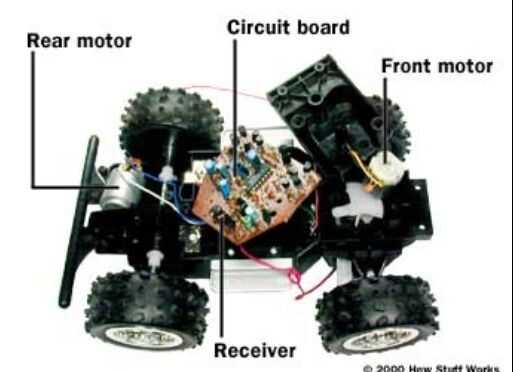Al llegar en el coche hay generalmente muchas cosas útiles. Aunque en alguna ocasión alguien ya ha tomado partes de él. Las cosas que he encontrado son: cajas de engranajes, ruedas, motores, circuitos, cables y engranajes.