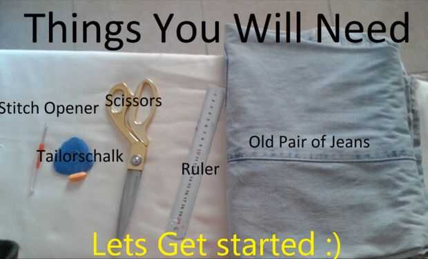 Cómo conseguir tela de mezclilla de los pantalones vaqueros viejos (1 / 6 paso)