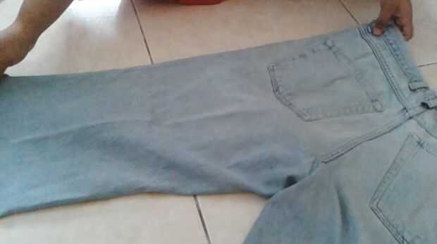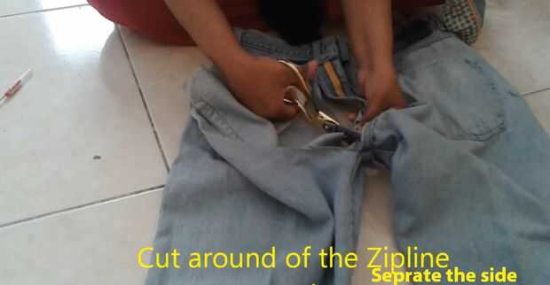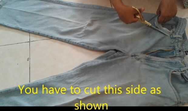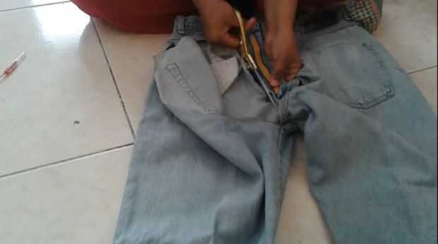 Cómo conseguir tela de mezclilla de los pantalones vaqueros viejos (3 / 6 paso)