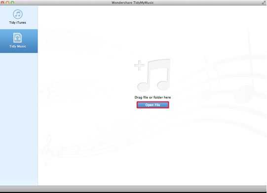 Si tienes música no gestionada por iTunes, puede arrastrar las carpetas de músicaMúsica ordenada"o haga clic en"Abrir archivo"para importar los archivos de música.