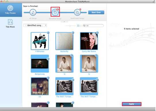 Identificar canciones" en la barra de exploración y seleccione todas las canciones en "