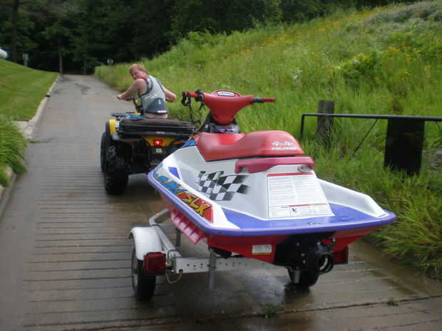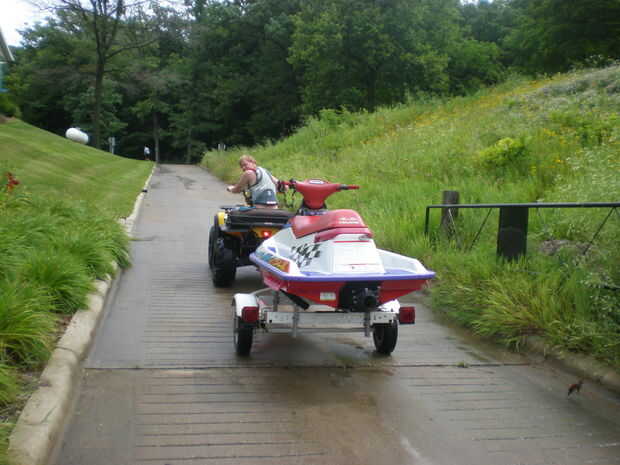 Esto es donde paga tener un vehículo. Aunque puede ser un poco más difícil de conducir por la rampa lo que sería si se forro a pie es mucho más fácil de detener. También, si el agua rechaza su oferta de la moto de agua es mucho más fácil escapar en un vehículo.