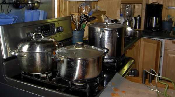 Lavar el bote y lo trajo hacia fuera a acumular más pulpa. Cuando la salsa era procesada, tenía bastante material acumulado para compensar 6 pintas de herbicida. Los recipientes limpios para rápidamente calefacción en el agua que los tarros de salsa vinieron hacia fuera y estaban listos para llenar el tiempo de que la población tenía simmered.