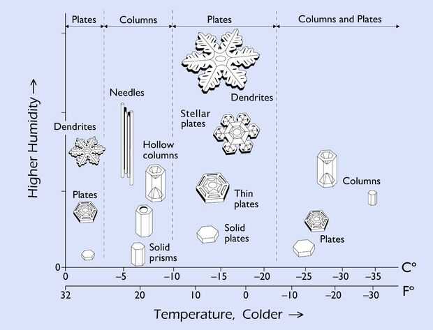 Nieve - allí no 's conseguir alrededor de este. Tamaño y morfología de copo de nieve (la forma de las escamas) depende en gran medida temperatura y humedad. Echa un vistazo en el diagrama he incluido para tener una idea de lo que las condiciones son mejores para la colección. En mi experiencia, entre 15-28F ha arrojado los mejores resultados.