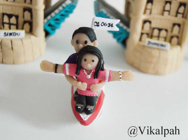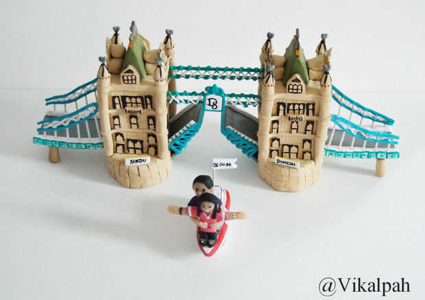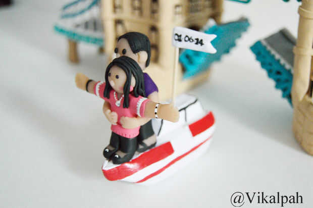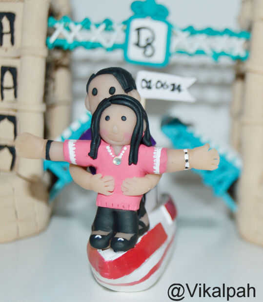 Un barco pequeño y con escena de titanic en la mente, esculpido un niño y una niña para que no queden en el borde del barco y añade una bandera a la parte posterior de la embarcación con la selección de diente y un pedazo de arcilla. Escribió la fecha de la boda con la pintura. ¡ Oh! No ya, titanic es un barco. Ya que sé, justo! Pero no será proporcional al puente que he construido un barco grande y así el barco en lugar de la nave. Espero que me respondió su voz mente :)