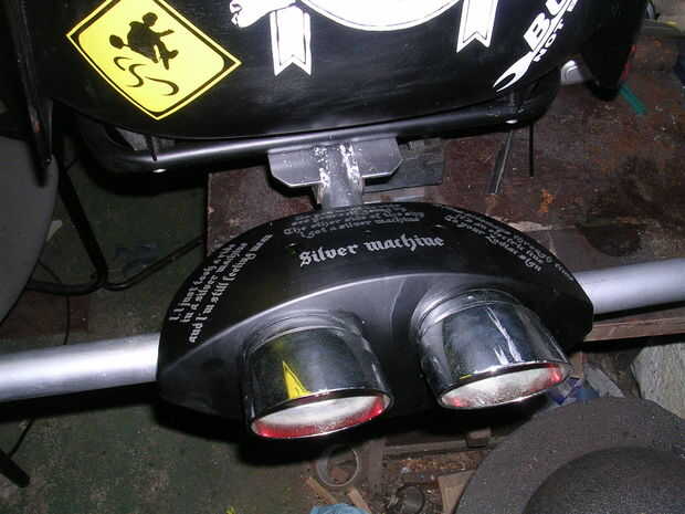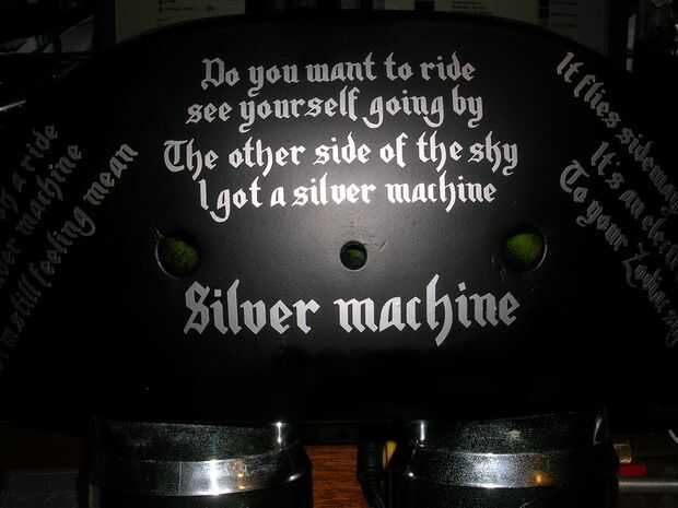 Para añadir un toque un poco más añadí las calcomanías de la letra de la canción máquina plata por Hawkwind, las letras son muy apropiadas para un trike de deriva.