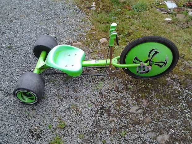 Encontré que una Huffy Green Machine aparece en Gumtree.co.uk el dueño había clasificado como en necesidad de reparación, esto era ideal para mi proyecto y me dirigió de en un viaje por carretera para recoger la máquina verde, realmente terminé comprando 2 de ellos de 20 libras.