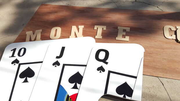 Para esta parte, utiliza dos de 4 x 8 piezas de madera contrachapada y los colocó en la entrada de la tarjeta que juega. Entonces sacó una fría mirada curva de aproximadamente 2 pies por encima de las cartas de juego. Luego cortar esto y aquello toda había pintada de negro. Lo siguiente que hice fue grapa las letras al fondo negro plano, que pintados de blanco. El razonamiento detrás de esto fue que añadí una tira de luz RGB led debajo de las letras, así, cuando era oscuro, las letras se iluminan en rojo, verde, azul, que añade un montón de carácter.