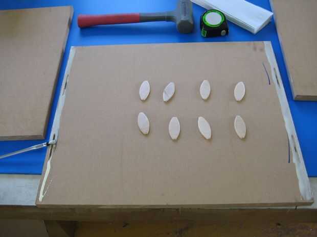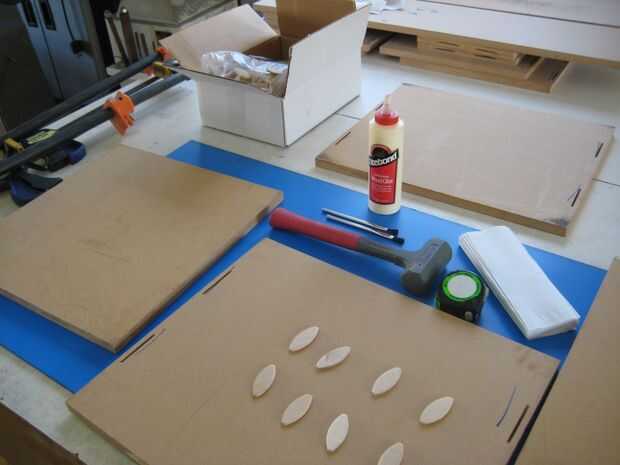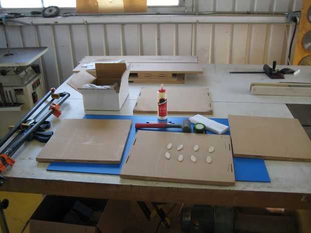 Con las galletas y pegamento en todas las superficies adyacentes, es hora de montar. Bordes a caras y construir el gabinete.