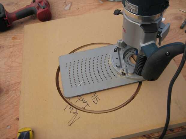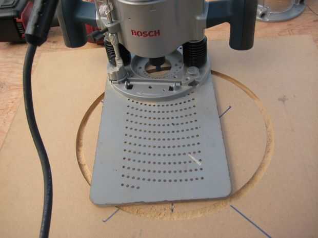 En cualquier caso, el primer paso es recortar un círculo que se adapta a su conductor. Yo uso un router de inmersión con una Plantilla de círculo de Jasper. Este Jig Jasper permite ser para cortar un círculo de cualquier tamaño entre 2" y 18". Si no tiene este práctico router y configurar de la plantilla de círculo, el viejo dibujo un círculo con un trozo de cuerda atada alrededor de un clavo funciona bastante rematadamente bien. Entonces, simplemente corte cuidadosamente a lo largo de su línea con un jig de la sierra y estás en el negocio.