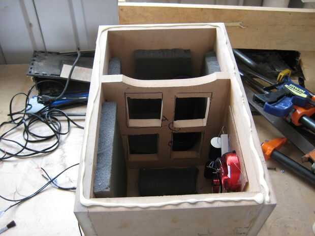 Las fotos de abajo muestran este proceso que ocurre en los altavoces de estantería primero, luego las torres y finalmente en el subwoofer.
