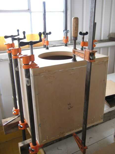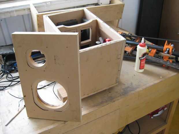 Con el crossover y el material amortiguador en posición es el momento de pegar los paneles frontales en posición. Aplique una tira fina de pegamento, use un cepillo para repartidos a lo largo del borde y la cara frontal de la abrazadera en su lugar. Antes de sellado hasta el gabinete, hacer un control visual más que ya tienes el cable conduce en un lugar que es fácil de alcanzar, que ha seguido todos los pasos anteriores, y que todo lo ocupa para ir, porque una vez cara frontal consigue pegado en, no es bajarlo.