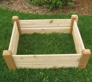 Paso 1: cortar cuatro postes de la esquina. Postes de la esquina deben ser por lo menos 3 veces anchos como el espesor de la pared de la cama de jardín, misma altura o un poco más alto.