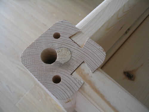 Paso 3: corte Paloma cola mortaja en postes de la esquina, habrá dos mortajas en cada polo.