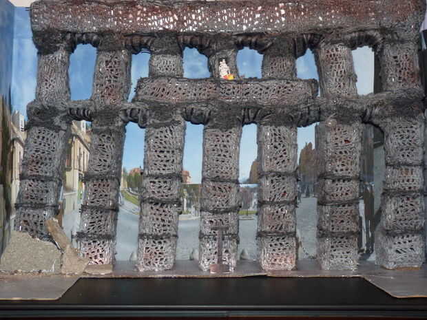 Este proyecto de Roman Aqueduct es perfecto para quien está aprendiendo a hacer ganchillo y quiere mucha práctica. Yo odio siguiendo patrones en crochet y estoy realmente muy, muy malo que mis bucles incluso y uniforme. Para hacer el acueducto que las medidas exterior tienen que ser preciso. Sin embargo, los lazos de ganchillo real representan las piedras utilizadas en la construcción del acueducto, que son todos de diferentes tamaños y formas. Porque los romanos construyeron el acueducto utilizando solamente piedras, sin utilizar a ningún tipo de cemento o pegamento para mantener Unidas (!), pensé que debo construir mi acueducto con sólo el hilado, hay elementos que estabilizarla o darle forma (!). Al final, tuve que utilizar algunas estructuras estabilizadoras, (hay un límite qué hilo puede hacer, después de todo) pero hay muy poco, y su acueducto terminará siendo cerca de 95 por ciento hilo puro.