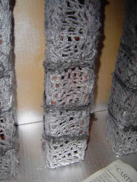 Paso 11 Crear el "desembarco" de las piezas base. Para ello tejer una línea recta todo el camino alrededor de cada pieza base en 6 cm de alto, 14 cm de alto y 22 cm.