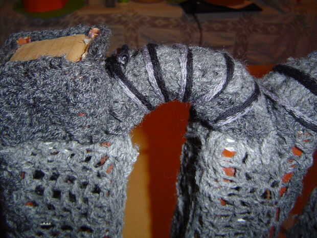 Tire el pedazo largo del arco que junto al cuadro que encuentra en la parte superior de la caja y asegure con una línea de lazos de ganchillo de delante hacia atrás.