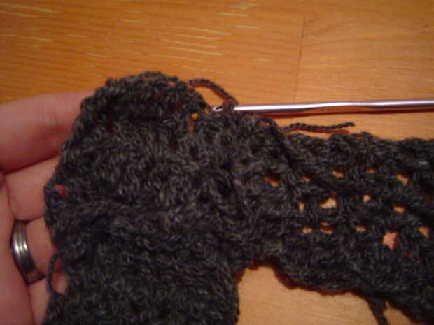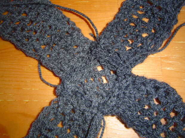 Ate un pedazo rectangular grande a cada lado de la pieza cuadrada. Asegúrese que la pieza rectangular en la parte superior la plaza cuando te los pones juntos. Antes de colocar las piezas, estirar suavemente la pieza rectangular ancho, para que se alinee correctamente. Al agregar la segunda pieza rectangular, asegúrese de que toquen las esquinas de las dos piezas rectangulares, incluso si esto significa que algunas de la pieza cuadrada cuelgue extra. Para este paso utilicé mi ganchillo como una aguja y solo mantienen tirando el hilo a través de dos piezas y luego a través del lazo que había creado. Repetir 7 veces.