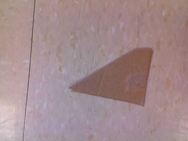 5. cortar tres aletas en forma de trapecio con longitudes base de 10 cm y 2 cm y una longitud de 7 cm de altura.