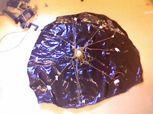 4. recorte de doce pedazos de hilo que alcanzan de la pelota de tenis a cerca de 25 cm fuera del paracaídas.