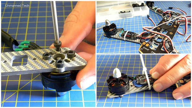 Paso 5: Asegurar los motores y ESC al chasis quadcopter