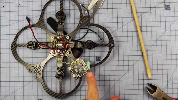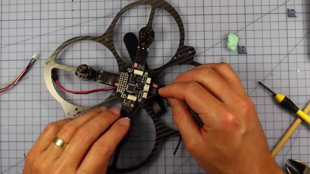 Una vez hecho esto estamos listos para garantizar a nuestro FC con algunos tornillos de plástico. Debe ser todo buscando muy aseado con sólo un cable 3v el receptor y una muestra de alambre VTX de 12v.