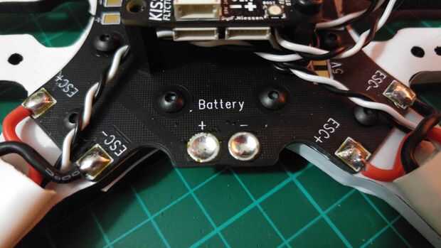 Tome el conector XT60 que hiciste antes y conecte a PDB. El cable rojo va al positivo y el cable negro va al negativo. Doble, triple comprobar que tienes la polaridad correcta de las cosas de otra manera pueden ir hacia el sur muy rápidamente.